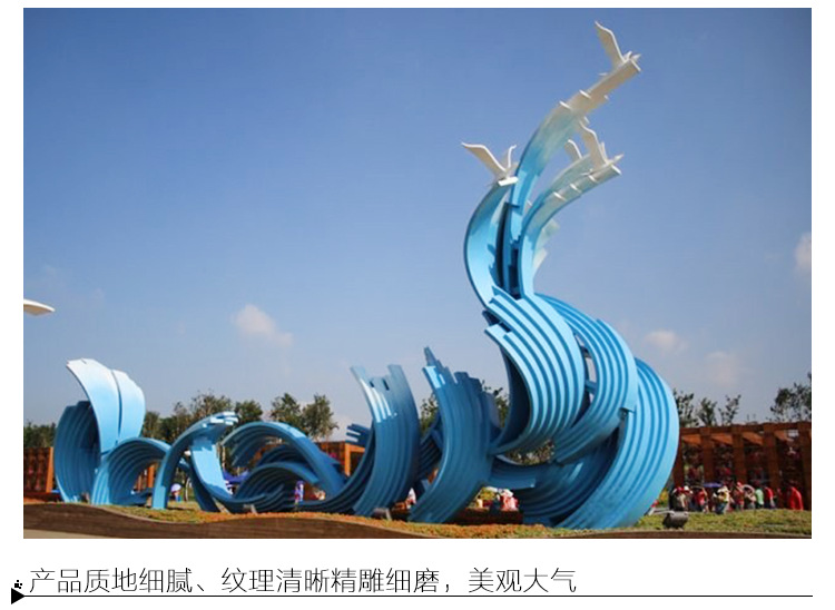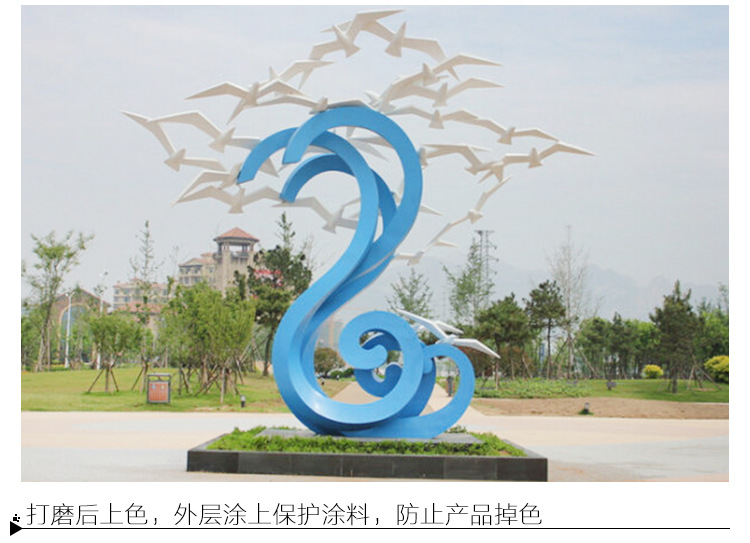 不銹鋼的優點,表面處理:不銹鋼雕塑本身的顏色銀白色,具有光澤。也可根據需求為雕塑上不同的顏色,一般為汽車漆。本產品適于公園、植物園、花園、住宅區、廣場、商場、酒店、賓館、會館等室外、內場所。不銹鋼材質優點:不易生銹,易清潔,且抗風能力強,經久耐用,成為現代城市雕塑的主流。